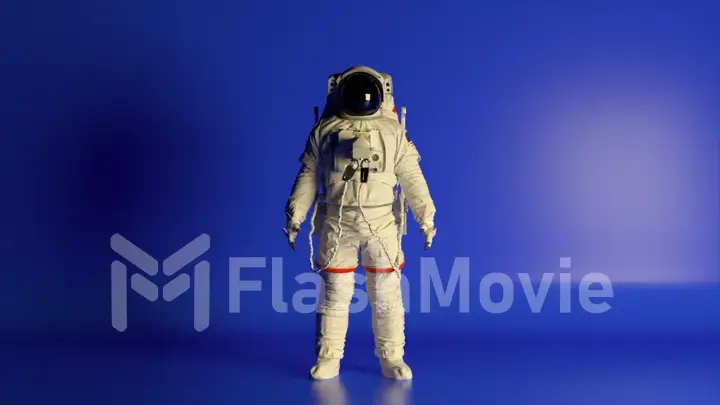 Abstract space concept. The astronaut stands on a blue isolated background with changing lighting. Chroma key. Helmet.